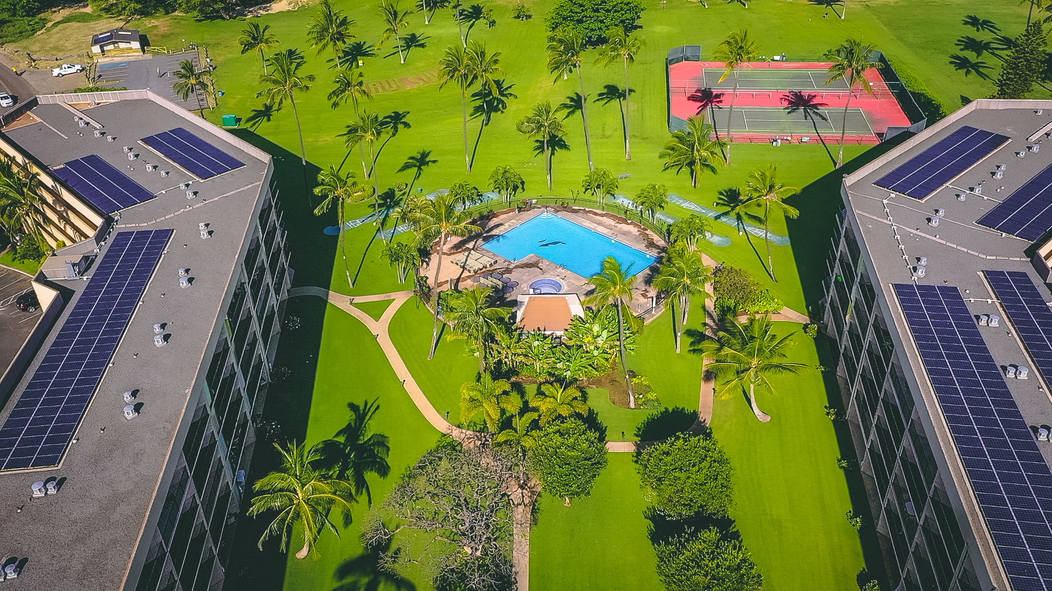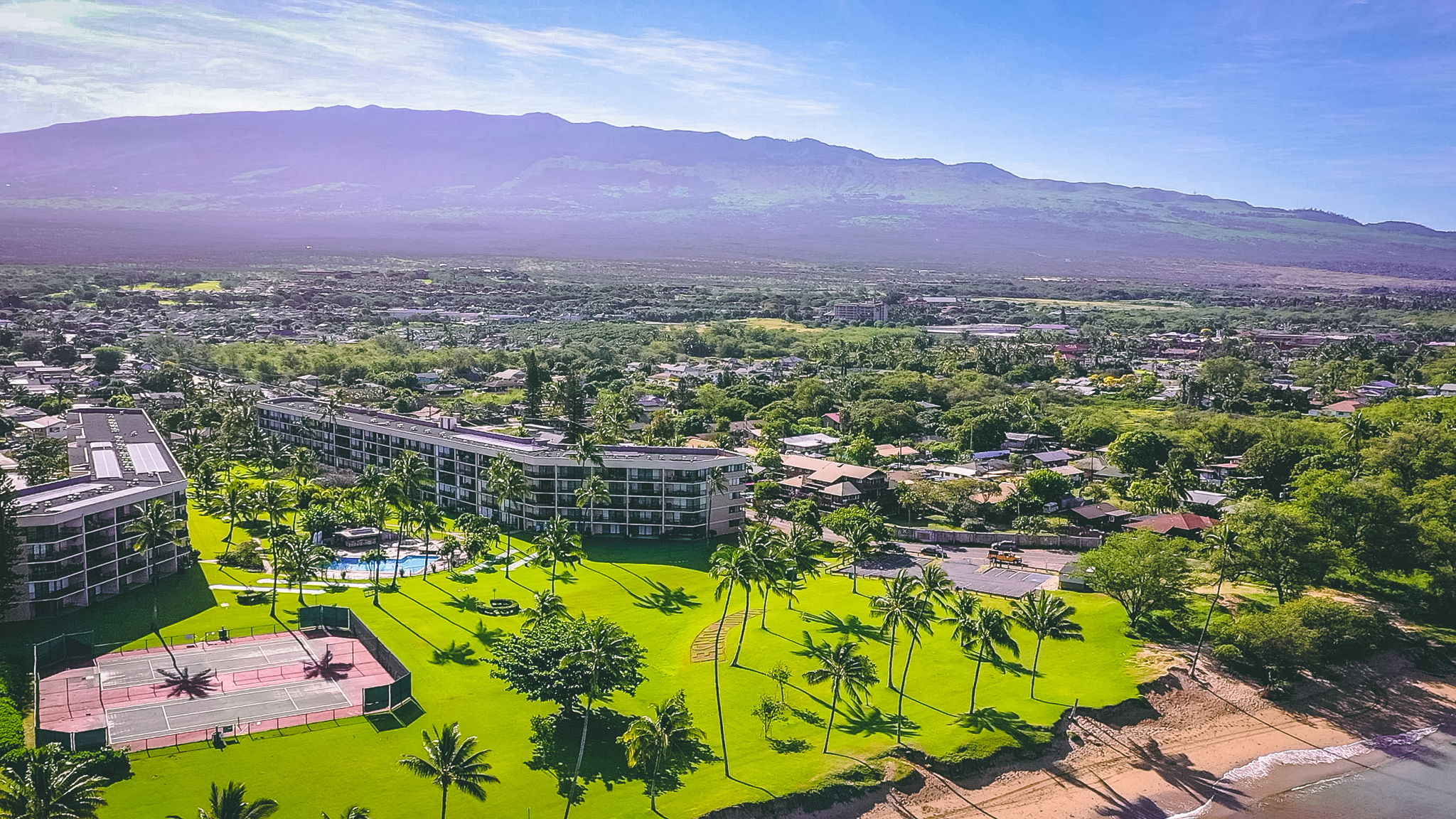 The Maui Sunset is located on over 5 acres of oceanfront at Kihei which is considered one of the best locations on the Valley Isle. Kihei is noted for its year round sunshine, balmy trade winds, and soothing evening air. It is one of the driest and sunniest areas on the entire island, averaging only 10 inches a year! World famous swimming and snorkeling beaches are minutes away at one of the many sandy safe beaches at Kihei and nearby Wailea. Just a short distance (6 miles) from five championship 18 hole resort golf courses at Wailea and Makena. The two buildings frame and protect a large recreational area that is carefully attended and landscaped. The 60 foot swimming pool with its broad decks and abundance of pool furniture invites you to improve on your tan.