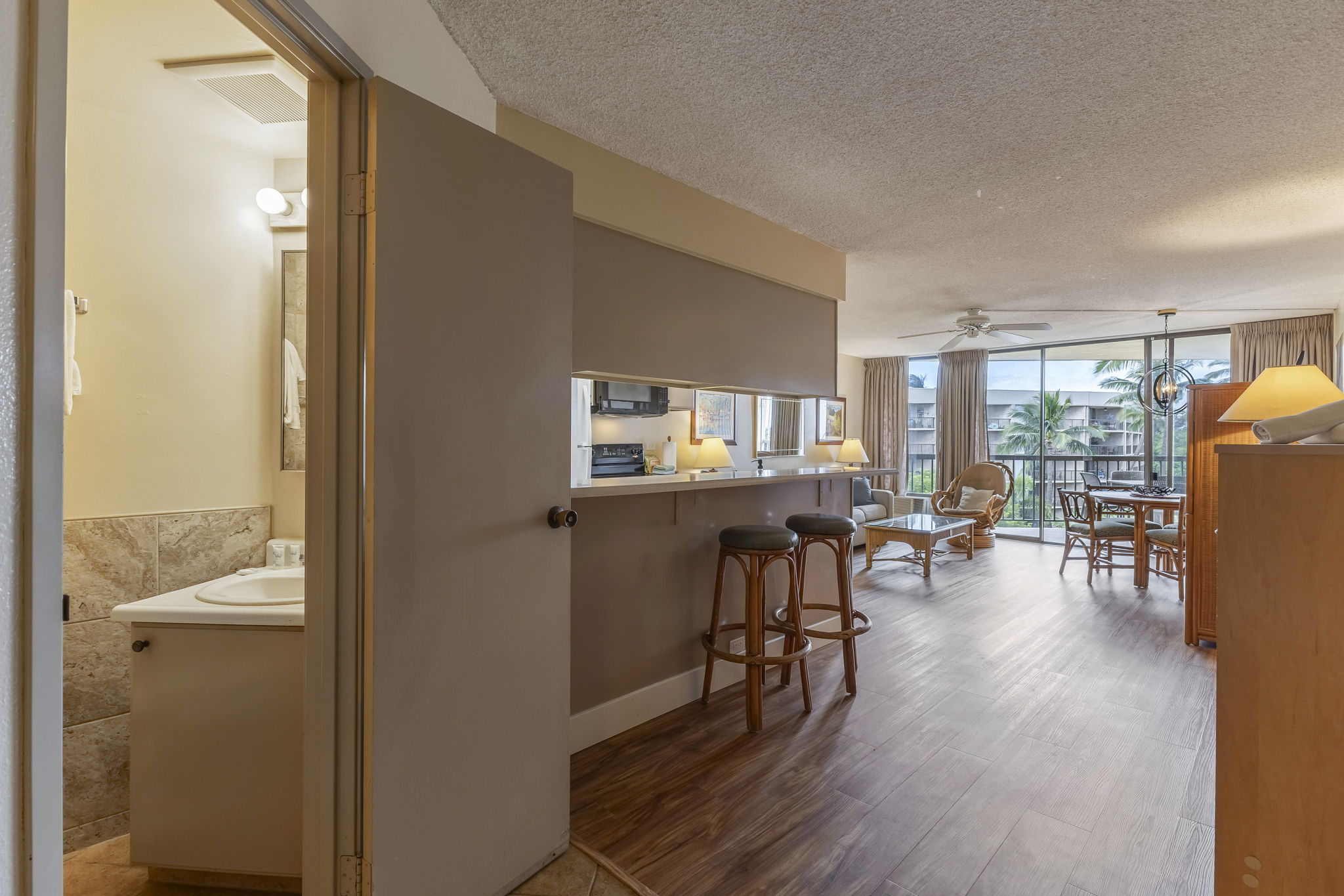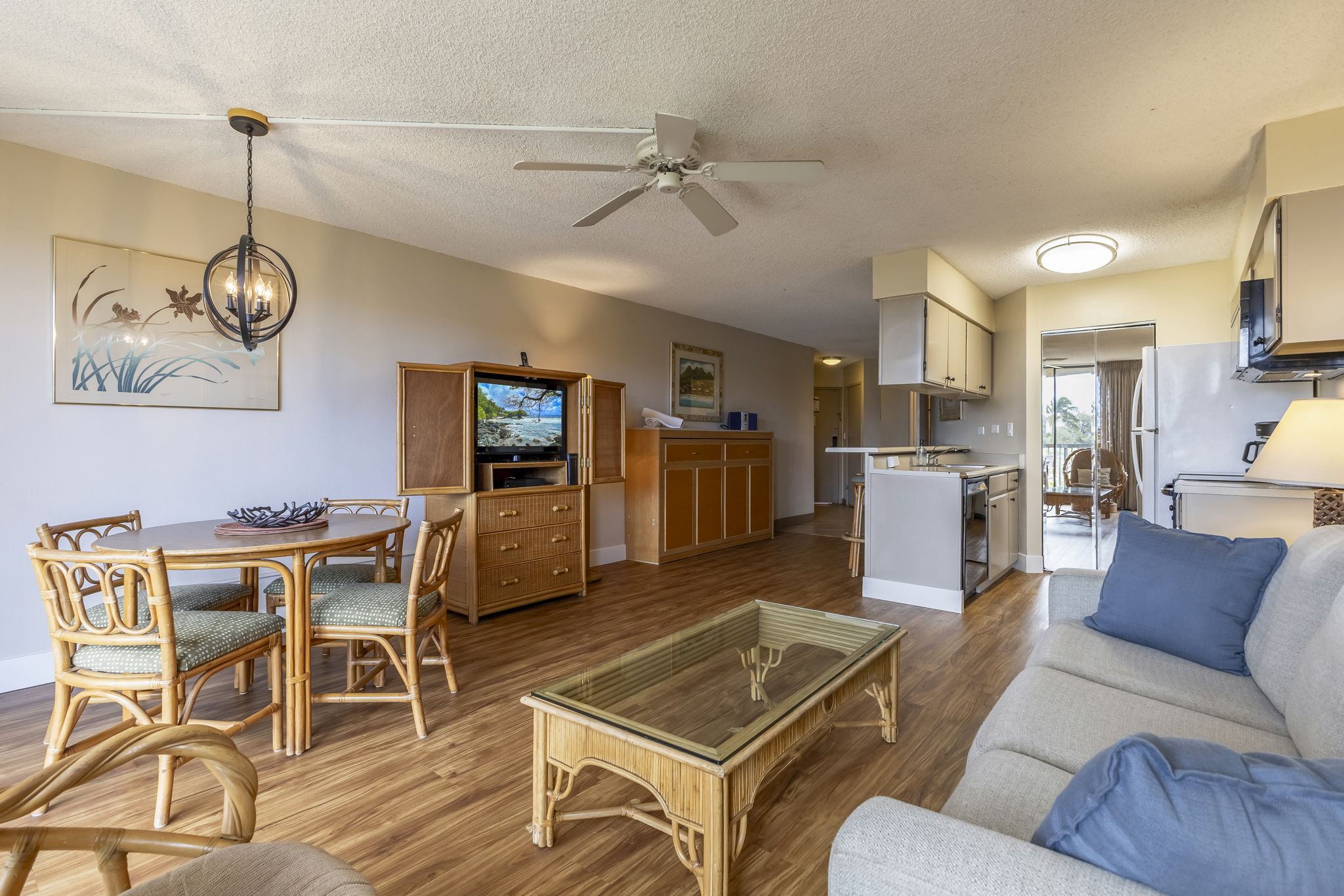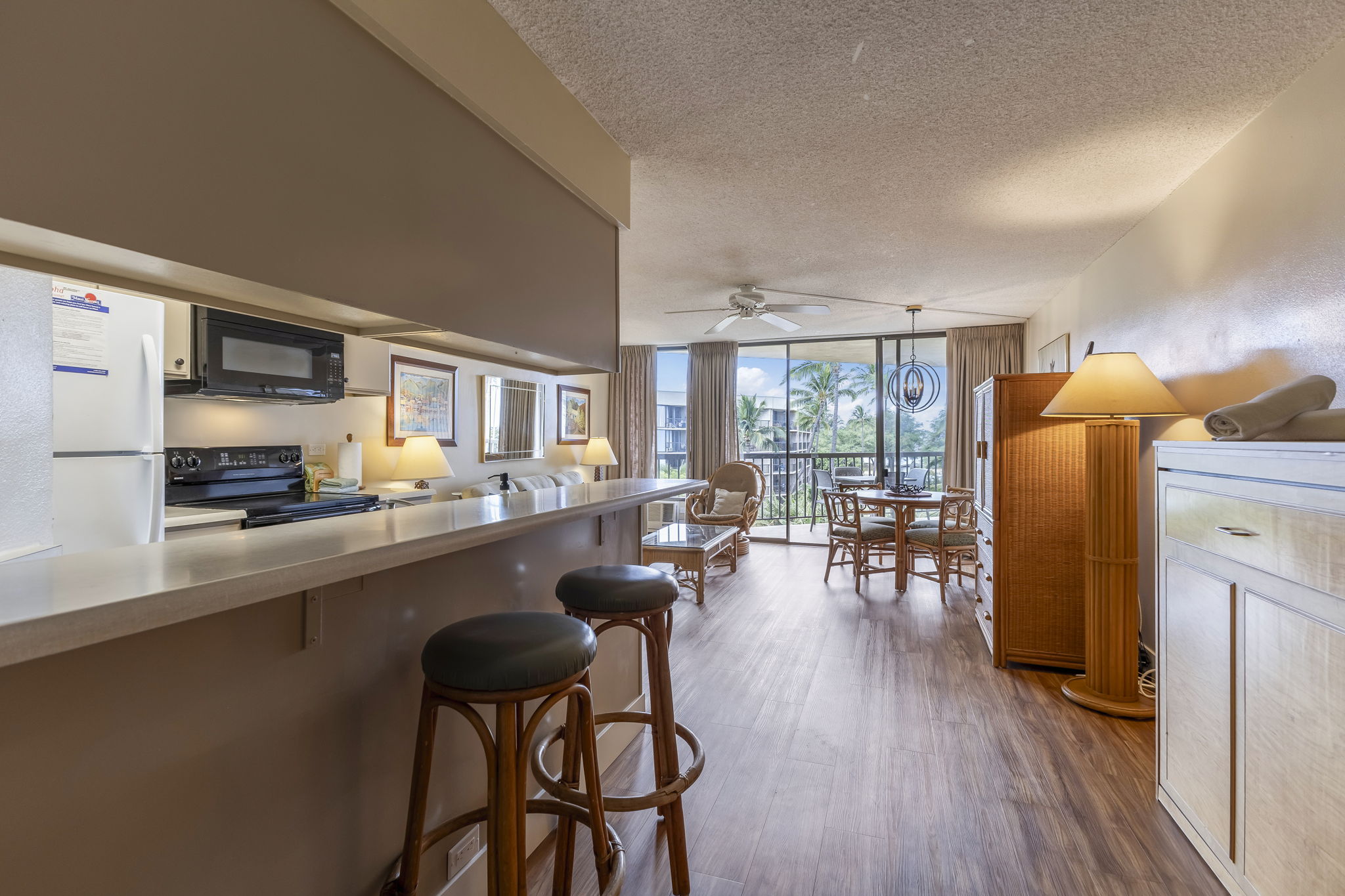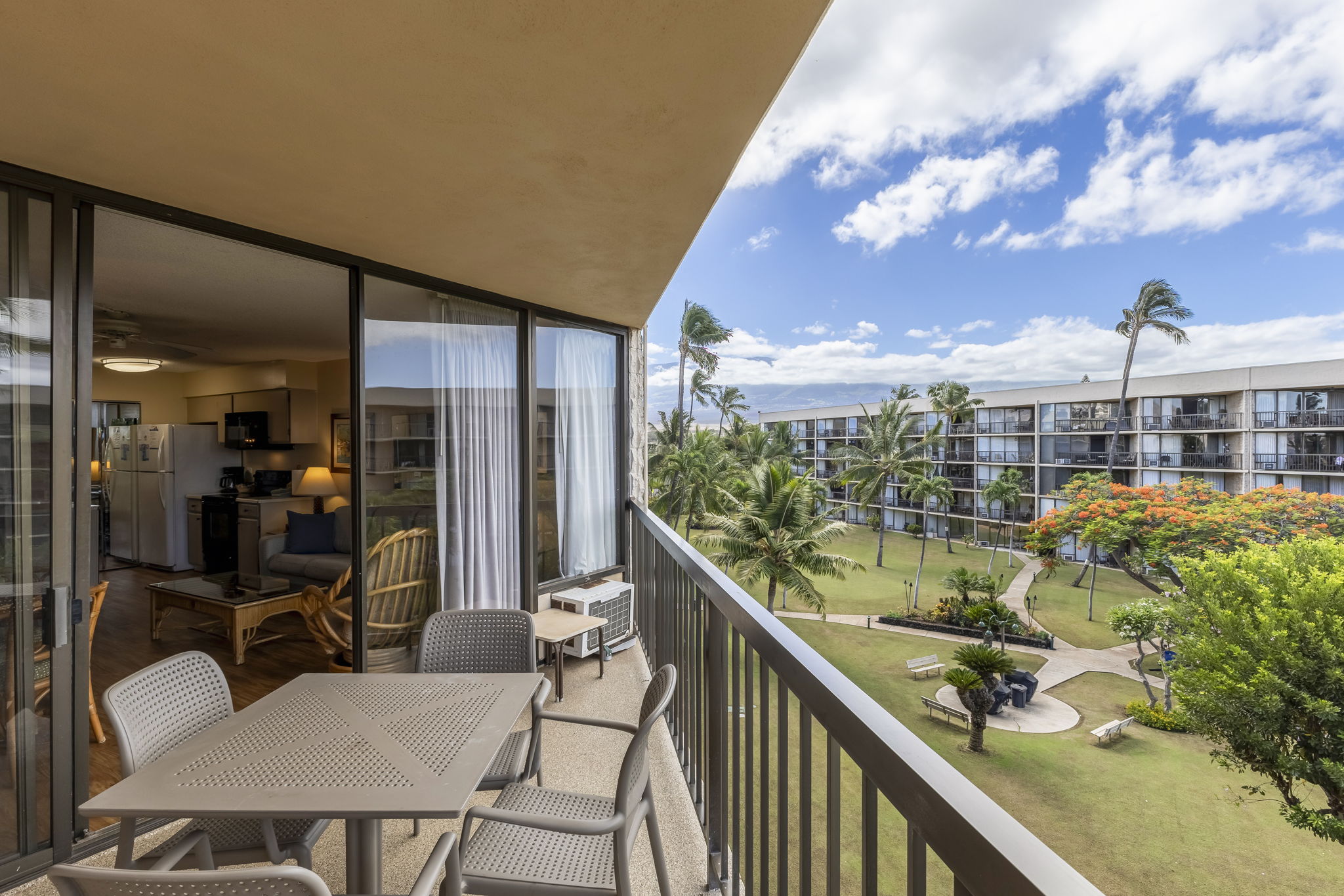 Fourth floor "A" building sunny side 1 bedroom 2 bath condo suite located at Maui Sunset in sunny south Maui. Easy access to tropical gardens and the ocean beyond. Watch the life of Maui unfold from the morning till evening from your private 114 sq foot private view deck.