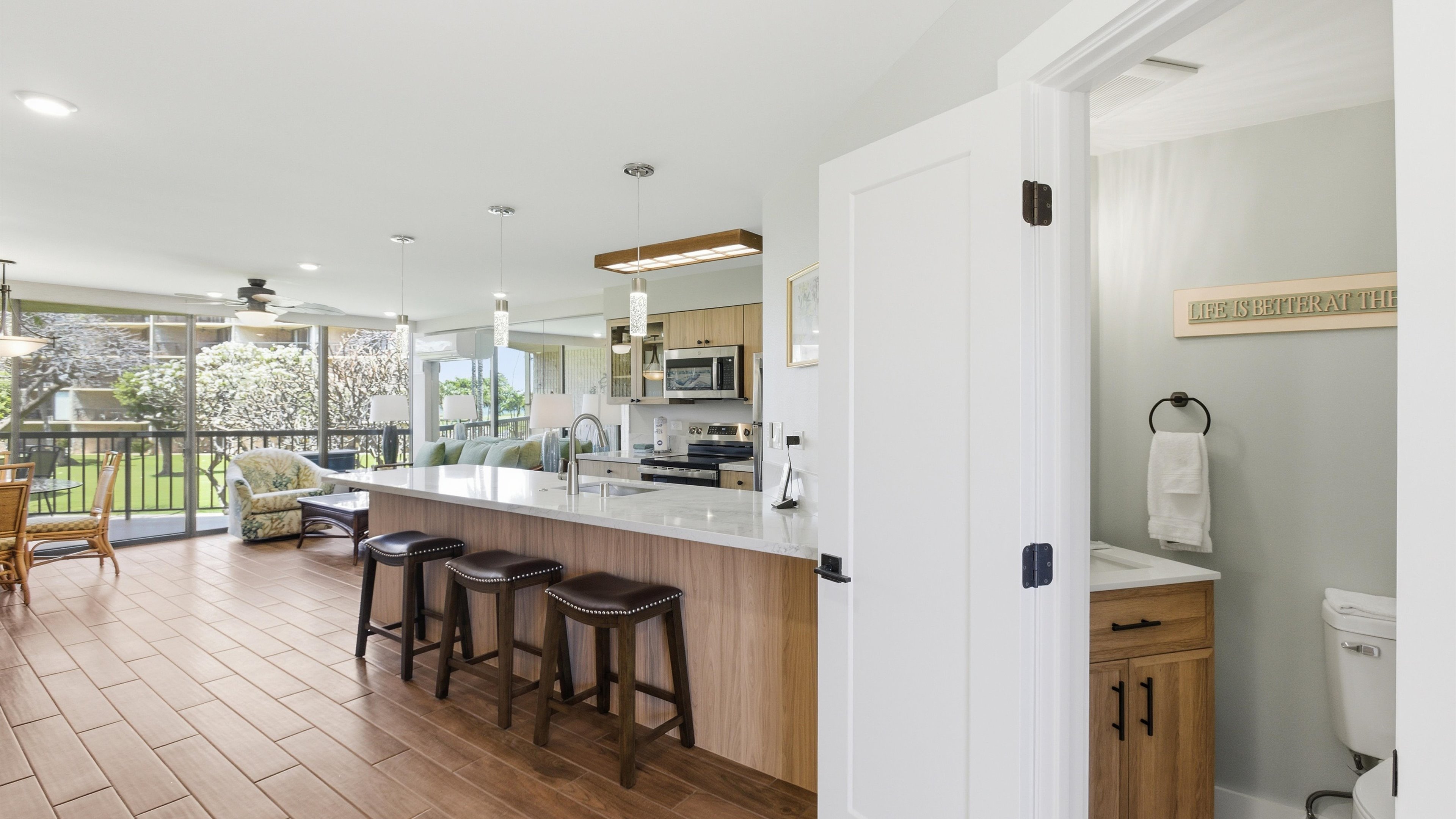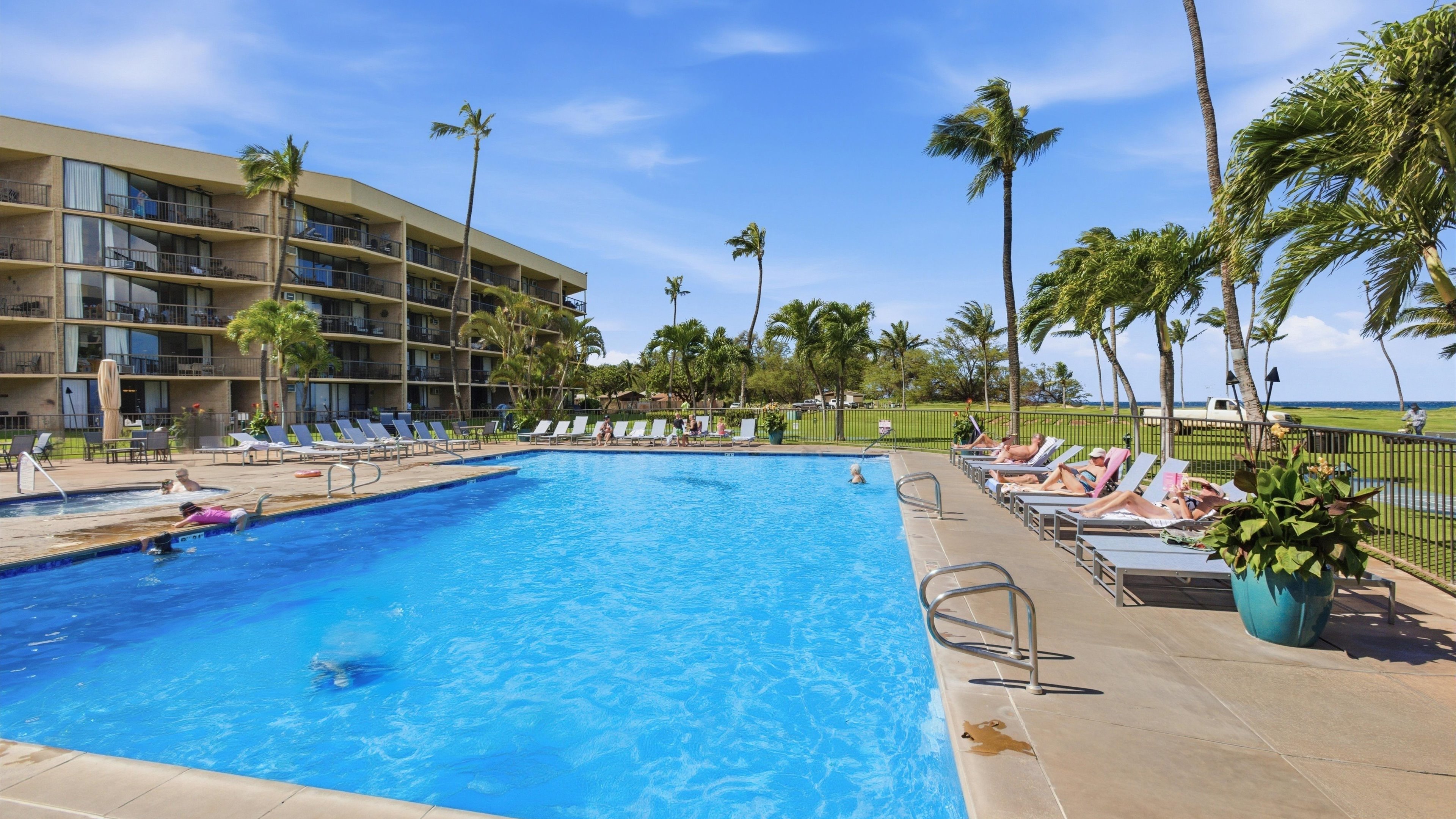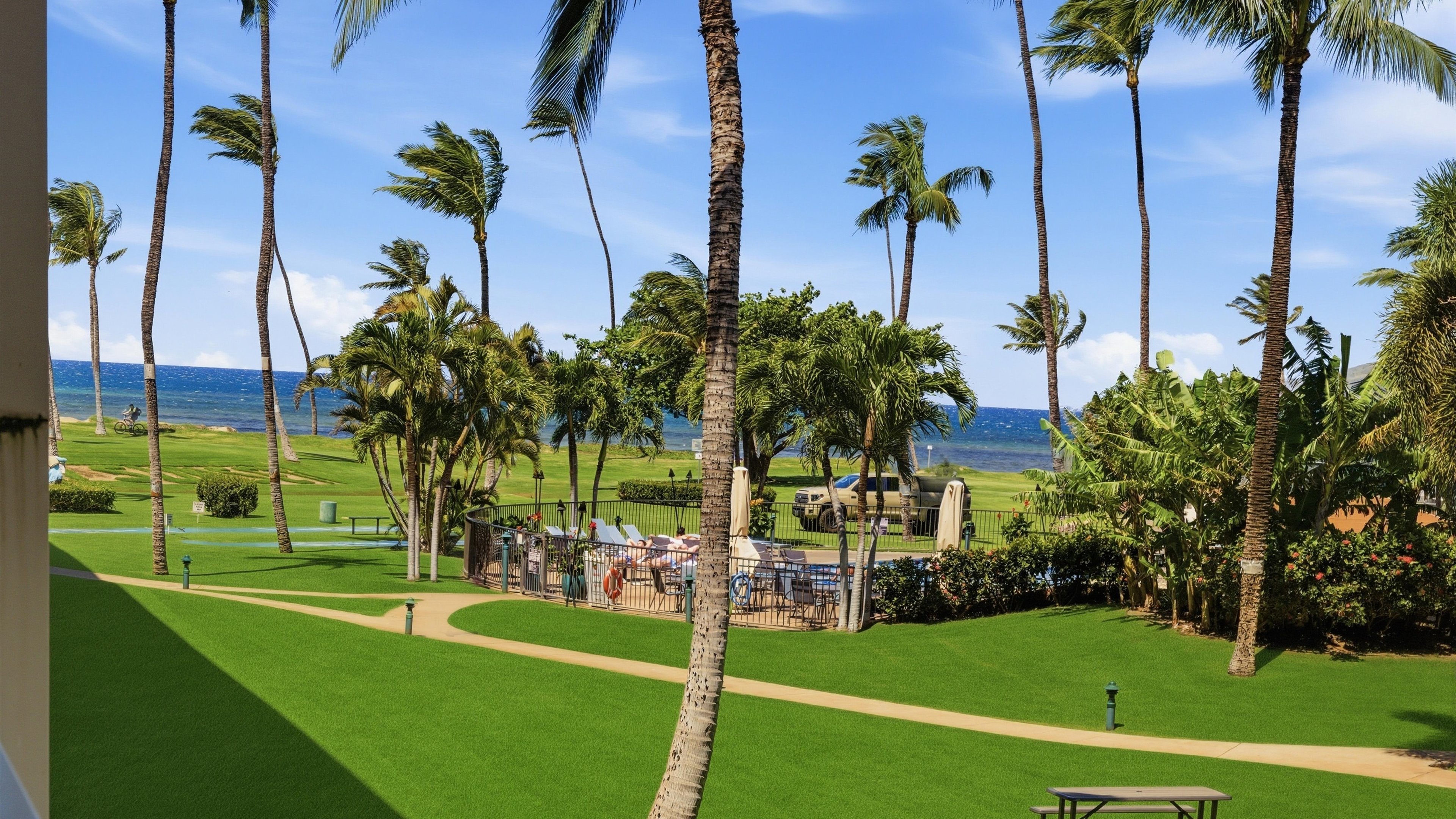 Just fantastic location and awesome views of the pool, ocean, palms in the tropical oasis of Maui Sunset. Super popular, wonderful location just easy access to pool, grounds, and amenities of the Maui Sunset.
